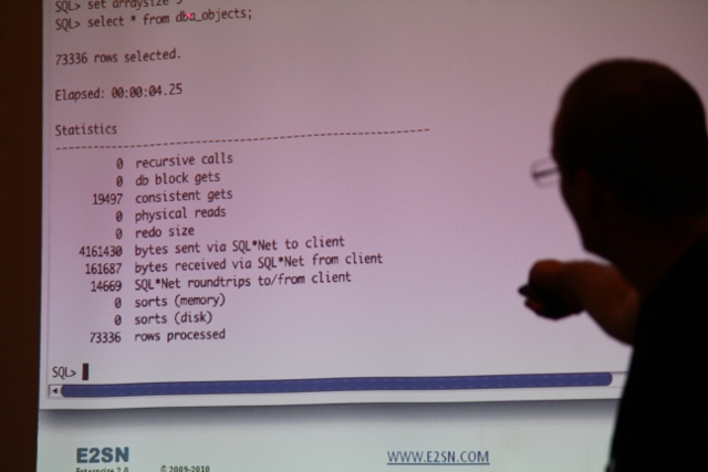 A few highlights of my day yesterday: Chen Shapira’s presentation on NoSQL, Alex Gorbachev’s presentation about not guessing and Jeremiah Wilton’s presentation on cloud computing. I didn’t know much about NoSQL, so this was a great overview of what all the buzz is about and some especially helpful comparisons and contrasts with relational database systems. Alex’s session was a bit more philosophical, but very enjoyable and motivating. (Like the slide with the “memorizing vs understanding curve”…) And Jeremiah’s session was the perfect discussion of Amazon’s cloud services from someone who knows them very well. Again, a strong database spin… discussing features that are most relevant to people like me who work heavily with Oracle RDBMS.