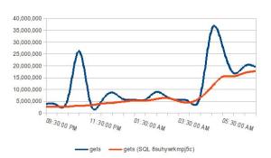 The reason I used a spreadsheet was that I didn’t know ahead of time which charts or formulas I wanted. I was investigating a performance problem and wanted to quickly and easily visualize many combinations of the data. I quickly copied about 30 metrics or so into columns in the spreadsheet and then started adding various formulas to combine them. Then I could very quickly create a number of charts with subsets of the stats and formulas.