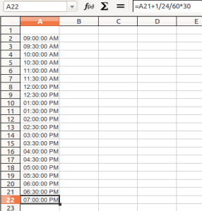 = A2 + 1/24/60 * [minutes between snaps]