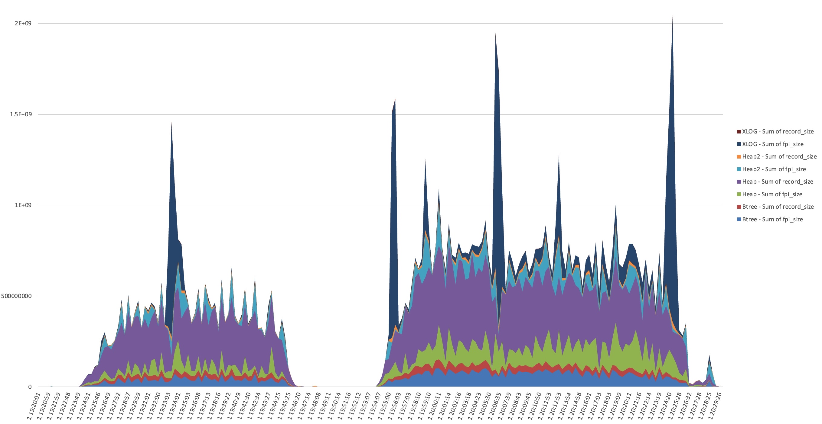 And then I had another realization: autovacuum_cost_delay was set to 0 on this system. Crazy theory number two: vacuum is setting hint bits on an append only table very fast, and maybe the longer the gap between checkpoint and vacuum, the worse the damage? Remember that the first time a page is modified after checkpoint, the full page is written into the WAL log to protect from torn writes during system failures (because the OS block size usually doesn’t align with the database block size). Even if the update is just setting a hint bit – the WAL record can include the full 8k database block.